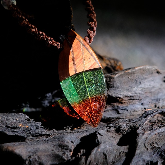 〈アイテムについて〉 1年の中で僅か数時間のみ採取できる葉脈石。 金に染まった葉、赤と緑の結晶、雪のような内包物が特徴。 魔除けや豊穣の効果が秘められておりその効果の汎用性の高さと希少価値から市場に出回ることは極稀である。 そんな物語の添えられた木と樹脂のペンダント。 クリスマスをイメージし朱と緑のレジンに雪のようなラメを封入した12月限定の葉脈石です。 片面にはオレンジ色のキュービックジルコニアをはめ込んでいます。 大きめなトップではありますが、木と樹脂という材質のおかげで重く感じることもなくつけていただけるかと思います。 ニットやTシャツなどシンプルめなお洋服と合わせていただくのが個人的なおすすめです。 また、紐は自由に長さ調節できますのでチョーカー的な使い方やバッグチャームのように使うこともできます。 〈仕上げについて〉 レジン部分はコーティングを一切行わず、木とレジンとの境が一体となるよう研磨しています。 また、木部は木の質感を活かすためにオイルを塗布しています。 紐はトップに合わせたワックスコードを手編みで編み込んで製作しています。 紐部分は金具を使わずに長さを調節できる仕様になっておりますので、金属アレルギーの方でも安心してお使いいただけます。 〈詳細〉 トップ寸法(最大):縦4.0cm・横1.9cm・厚み0.9cm 仕立て:ワックスコード+ガラスビーズ コード長:MAX約65cm(長さ調節可・金具不使用) 紐色:ブラウン 着脱は頭からかぶってするタイプです。 色味などの確認のため動画もご用意しております。 BASEショッピングアプリをご利用の方は下記URL(You Tubeへ移動)から。 https://youtu.be/nJ6gPXFF9NA PCやアプリ以外からご覧の方はページ下部に動画がございますのでそちらよりご確認くださいませ。 (下部よりご覧いただけない場合はお手数ですがリンクからご覧ください) 〈ショップカード・説明書に関して〉 同じカテゴリー(ペンダントやピアスなど)における2回目以降のご注文に関しては資源削減のためショップカード・説明書等を同封しておりません。 また、複数のご注文に関しましては片方のみに同封いたします。 プレゼント等でご注文頂いた場合などショップカード・説明書をご希望の場合は「注文時の備考欄」または「注文後にお問い合わせorメッセージ」にてお申し付けください。 〈お受け取り時間帯のご指定について〉 発送方法が宅急便コンパクトの商品は、お受け取り希望時間帯のご指定が可能です。 (ネコポス発送の商品はポスト投函ですので時間指定できません。) お受け取り時間帯の指定ご希望の方は、「注文時の備考欄」または「注文後にお問い合わせorメッセージ」からご連絡くださいませ。 なお、交通事情や天候状況、災害などの発生、その他さまざまな条件によりご希望の時間帯にお届けすることができない場合があります。 予めご了承ください。 ご指定いただける時間帯は下記のとおりです。 ・午前中 ・14~16時 ・16~18時 ・18~20時 ・19~21時 〈お手入れについて〉 ・当ショップの作品は木を使用しております。汗などの水分を放置いたしますと傷みの原因になりますので、木部が濡れた場合は出来るだけ早く乾いた布で拭き取り、風通しの良いところで1日ほど乾かして下さい。 ・レジン部分についた指紋などの汚れはメガネ拭きなどの柔らかい布で優しく拭いて下さい。 ※その他詳しいお手入れや保管の方法は同梱の説明書をご確認下さいませ。 〈購入に際してのご注意〉 ・作品の画像はLED照明や太陽光を使用し撮影したものを掲載しております。肉眼で見た色味に近くなるよう心がけておりますが、お使いのモニター環境によって、実際の色と異なる場合がございます。 ・着用画像がある場合、着用しているものは販売アイテムとほぼ同じサイズ感・形のものを使用して撮影したものになります。大まかなサイズ感を確認するためにお使いください。