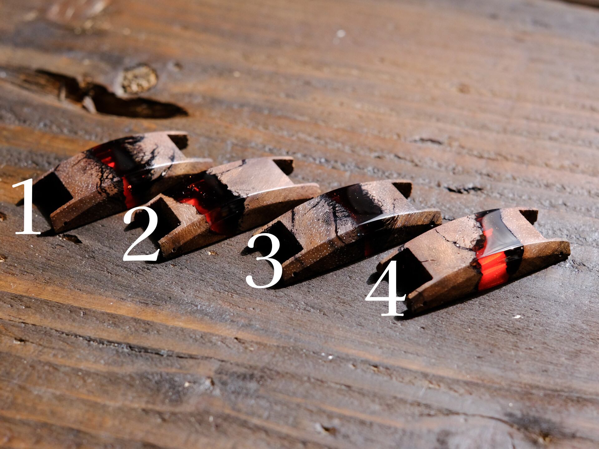 レジン部分はコーティングを一切行わず、木とレジンとの境が一体となるよう研磨しています。