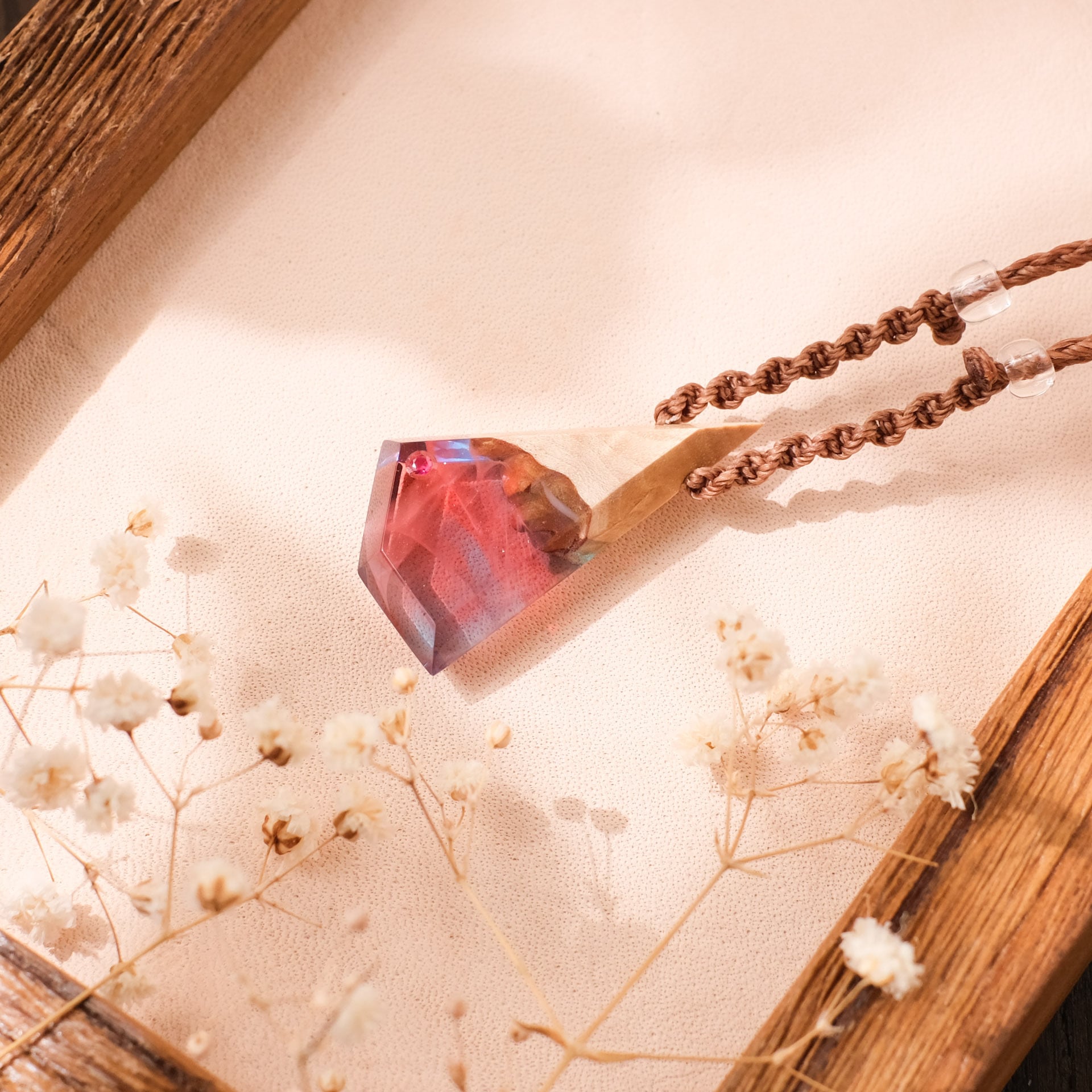 A wood resin pendant accompanied by such a story.