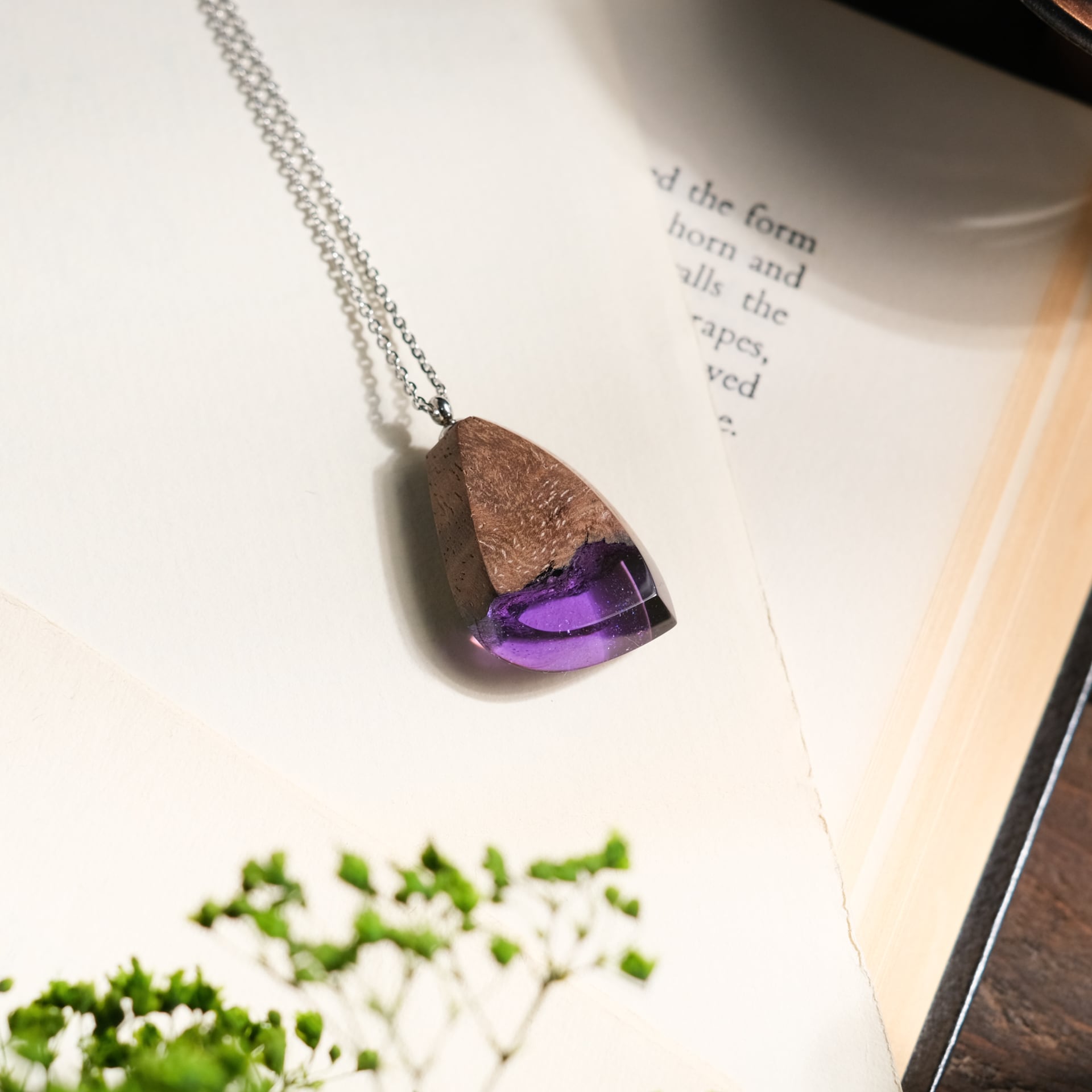 そんな物語の添えられたウッドレジンのペンダントです。