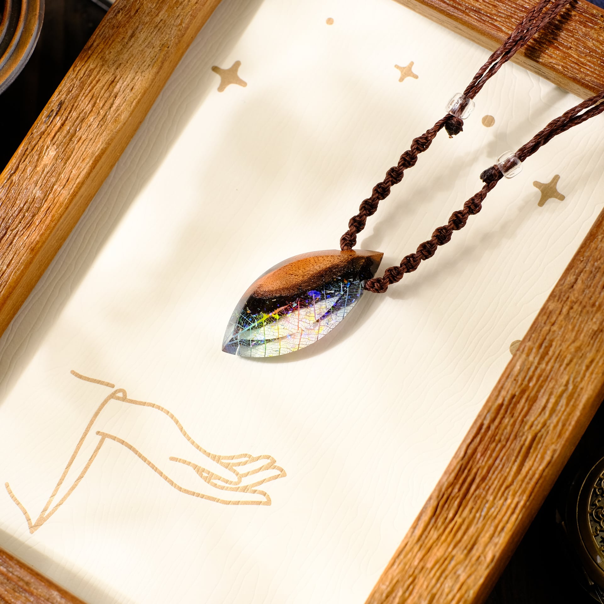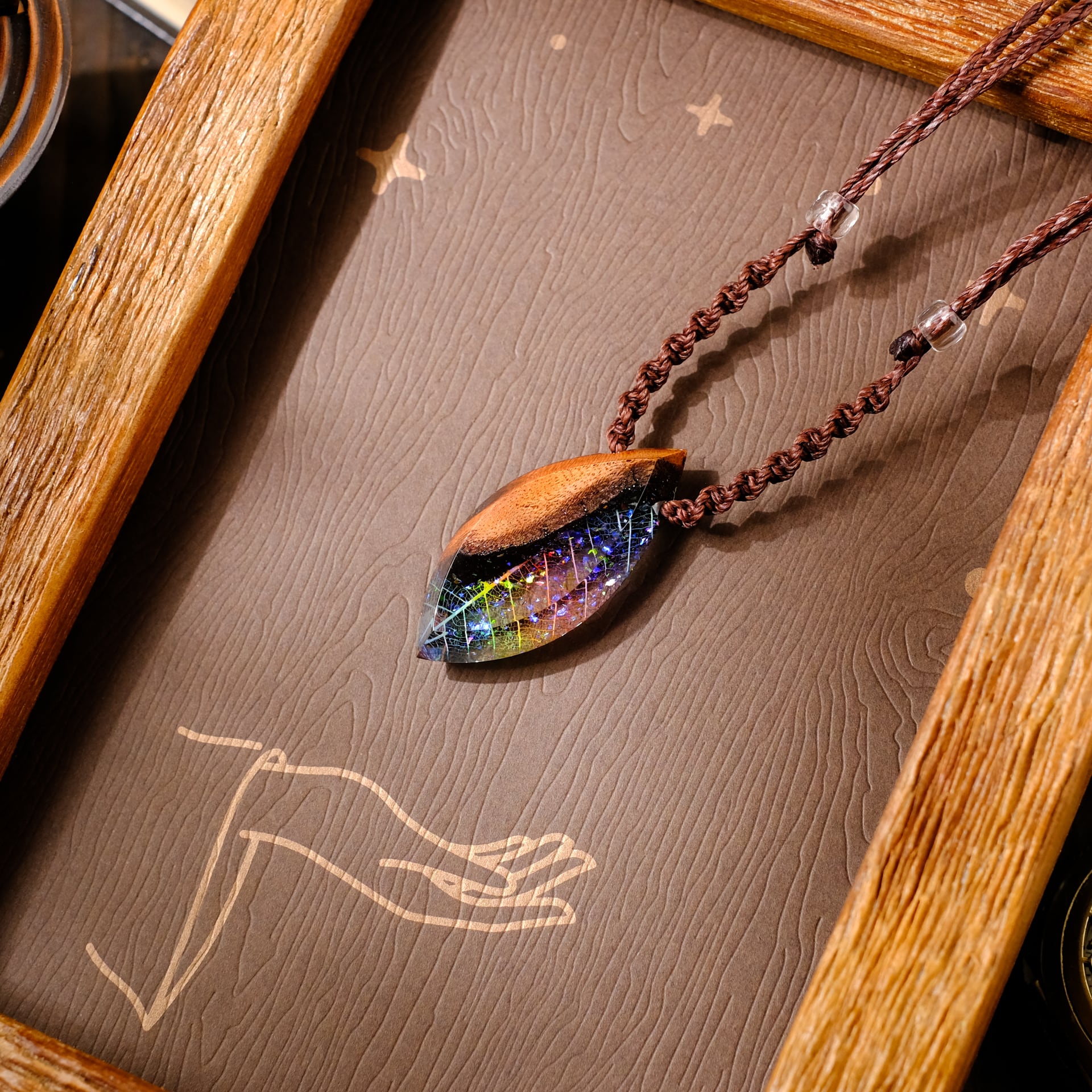 角度や光の当たり方で葉脈の色やホロの色が反射し、シンプルな葉脈石よりも華やかさが感じられます。