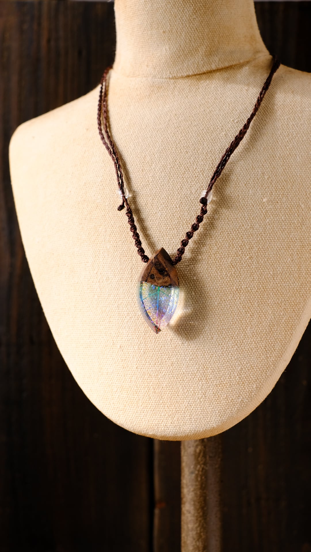 水晶のようなクリアの結晶をベースに多色に染めた葉脈と色とりどりのホロを封入した753WORKSで人気の葉脈石シリーズの1つです。