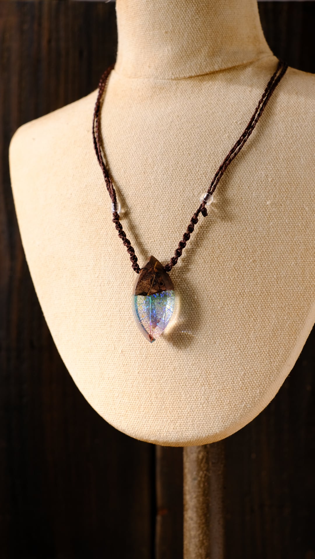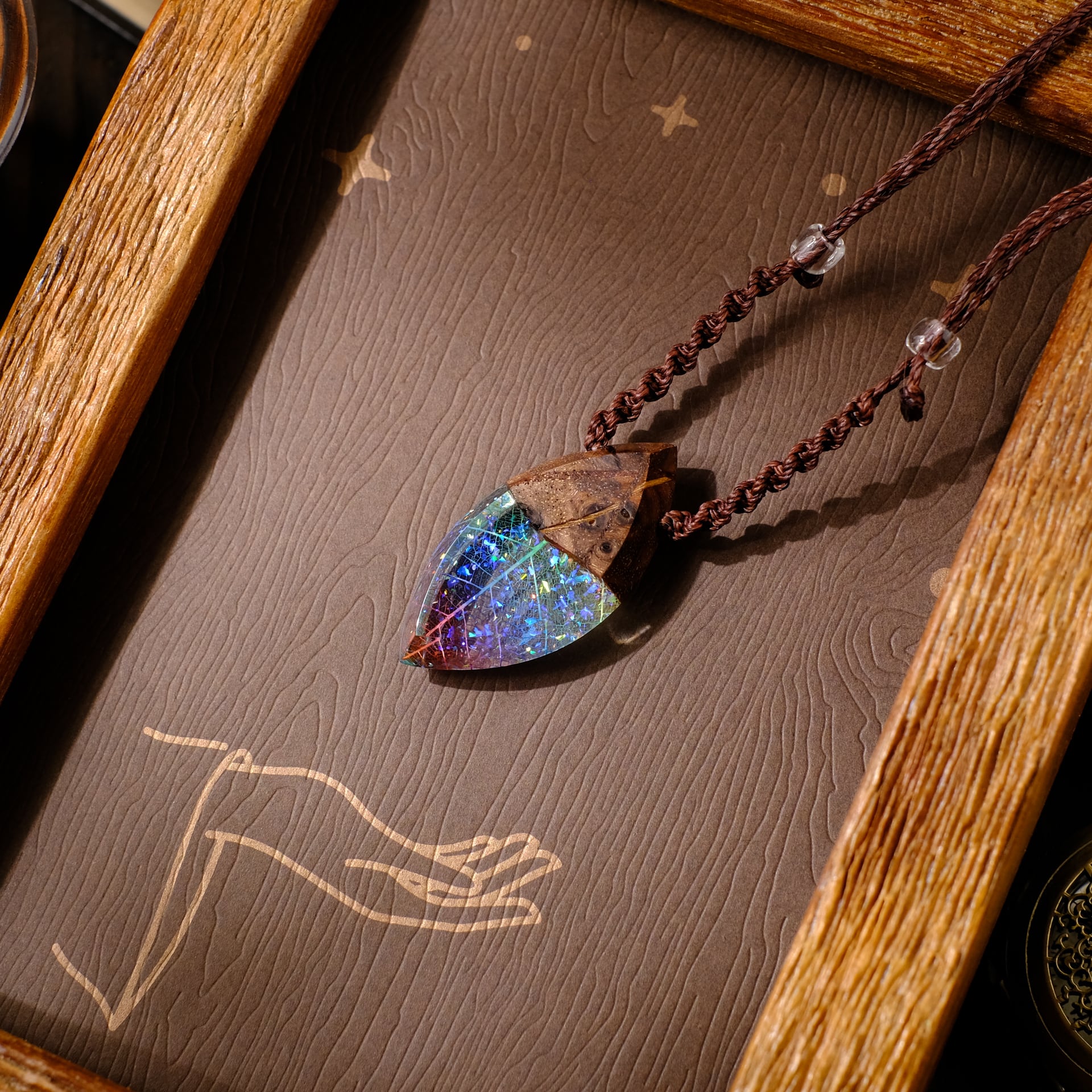 角度や光の当たり方で葉脈の色やホロの色が反射し、シンプルな葉脈石よりも華やかさが感じられます。